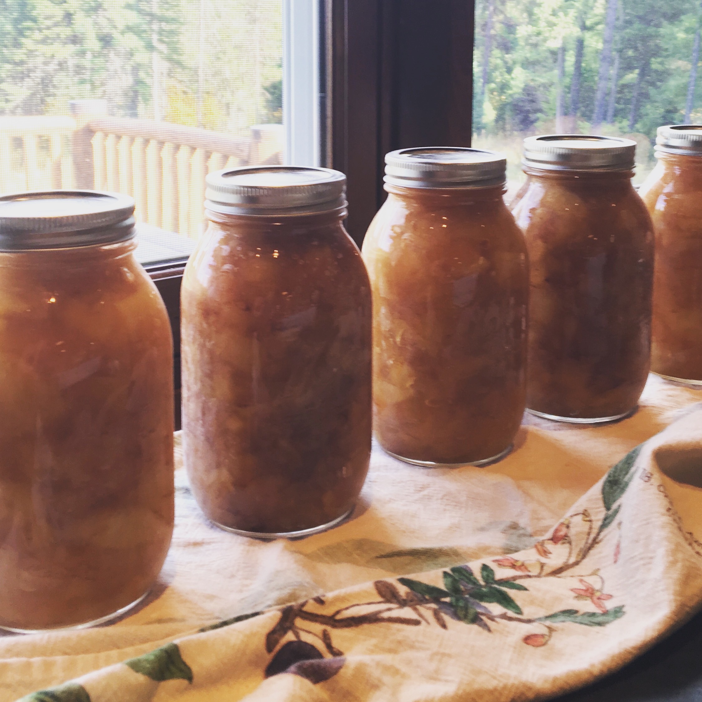 - Remove the jars from the canner using the tongs and set on thick clean towels to cool. Once completely cool, tighten the rims. Store in a pantry. You will hear the lids “pop”- this is you know you have processed the applesauce long enough and the contents are safe to consume. Once the jars have been opened to enjoy, refrigerate any leftovers for up to 2 weeks.